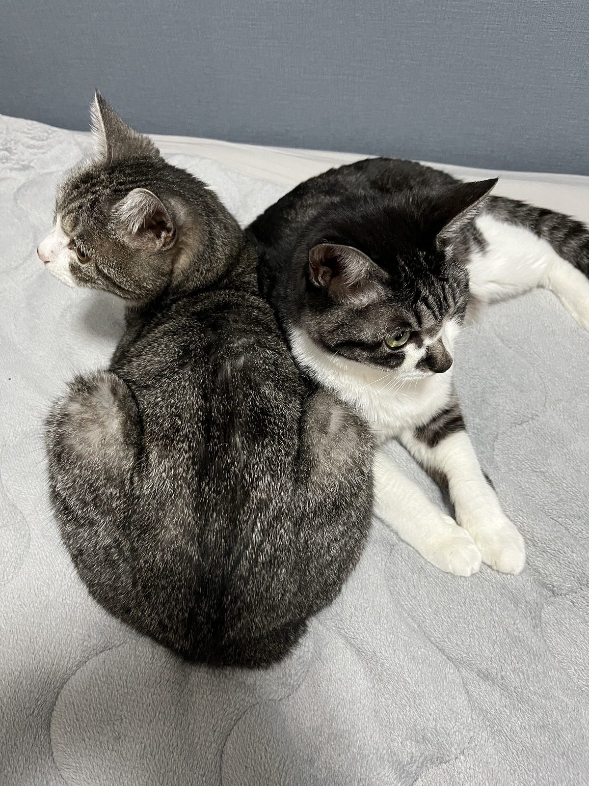 ときどきこうして背中合わせで寝たり、仲良し(?)っぽい姿を見せてくれます。